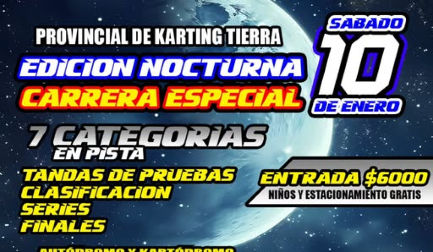 En esta edición nocturna, el provincial de kartin contará con 7 categorías. El valor de la entrada es de 6 mil pesos, niños hasta 10 años y estacionamiento gratis.