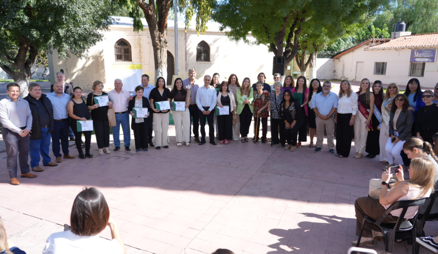 El acto contó con la presencia de Mario Abed, intendente; Ricardo Morcos, presidente del HCD; los senadores provinciales Mario Ana y David Sáez; concejales y funcionarios; además de Mara Lizana Muñoz, reina departamental de la Vendimia; Julieta Cónsoli, reina del Encuentro de las Naciones; y Rosana Escobar, reina del Adulto Mayor.